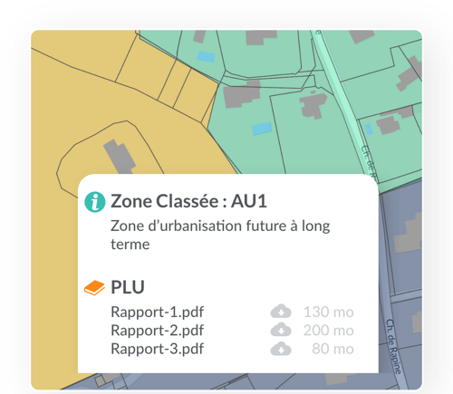 Certaines données sont géolocalisées et consultables sur la carte comme les zonages, le cadastre, ou la recherche de parcelle.